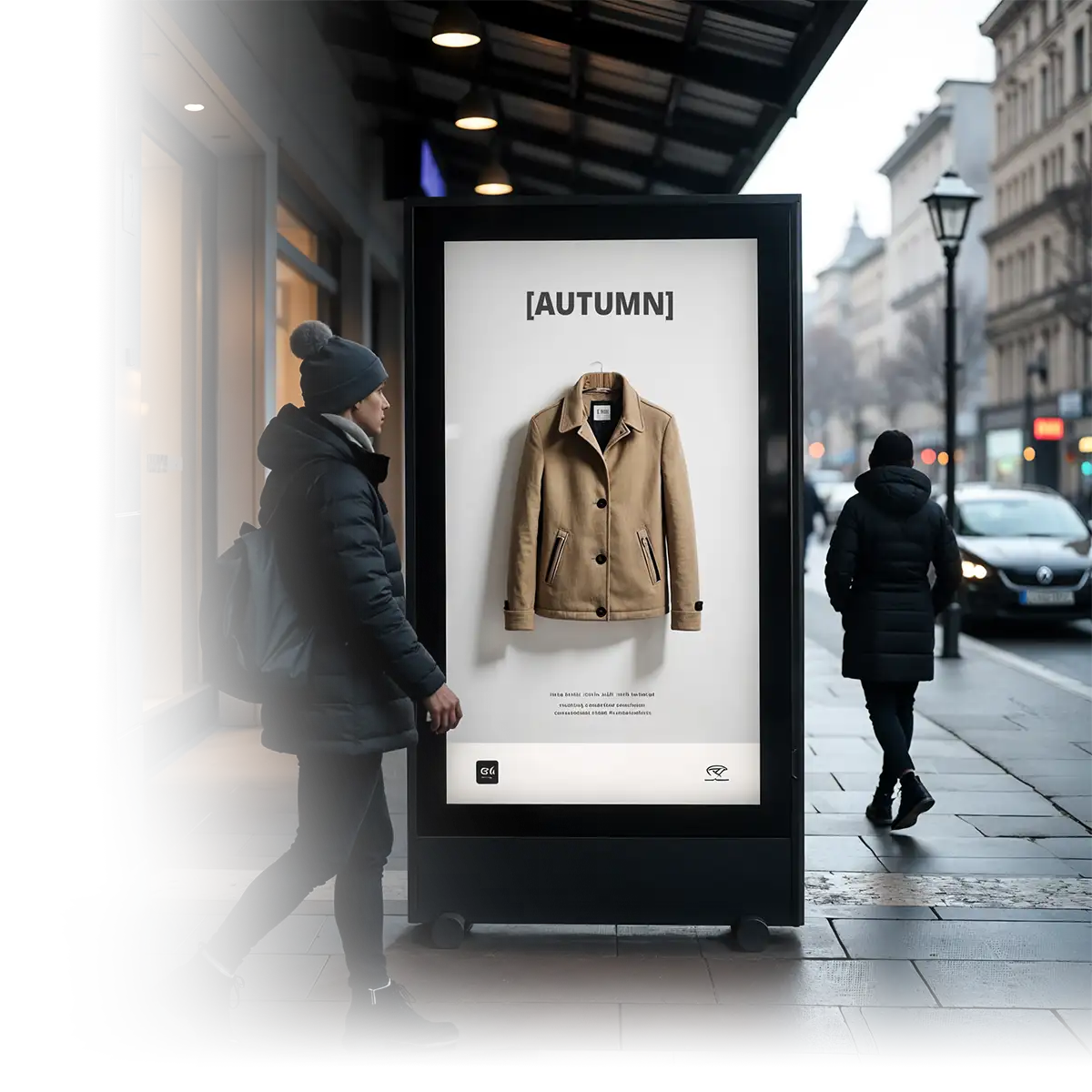 Digitales A-Board mit Full HD LCD-Display und Media-Player.