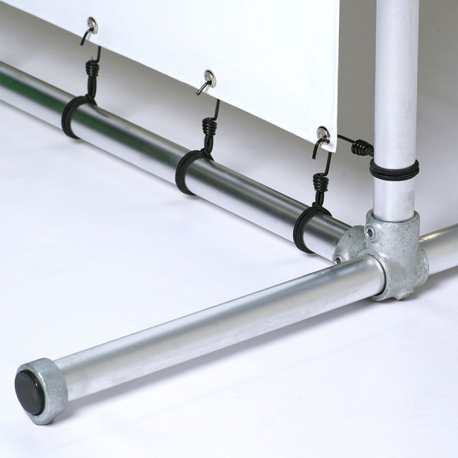Eine robuste Außenbannersystem aus kräftige 3 mm / Ø 48 mm Aluminium Röhre. Freistähender Wand mit Füße für Präsentation von PVC-Banners im Großformat.