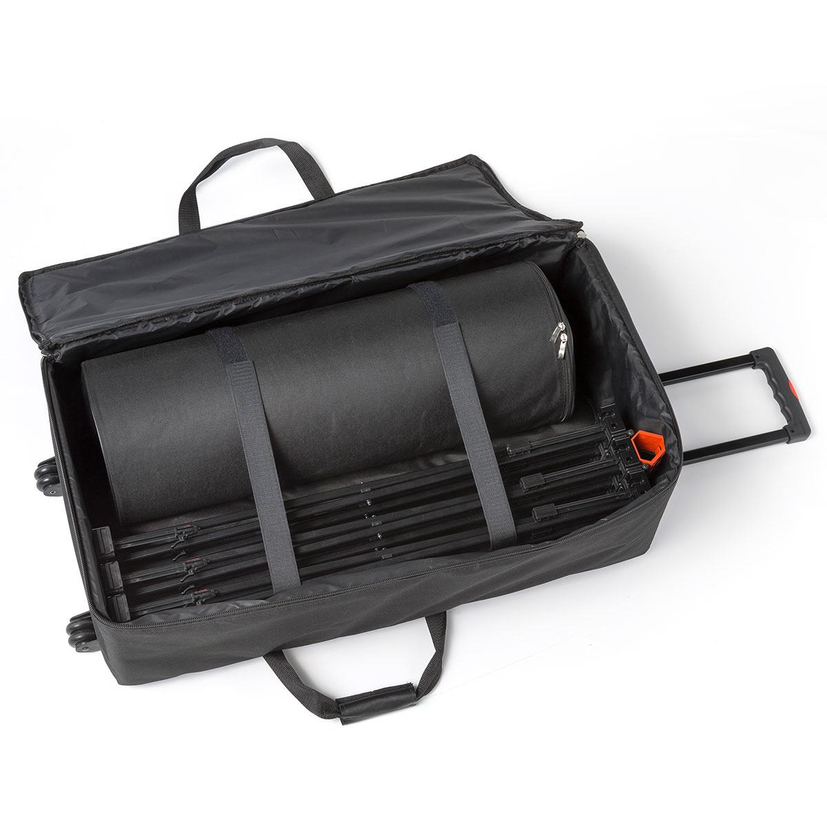 - stabile mobiler Trolley mit extra Tasche zum Schutz der Drucke