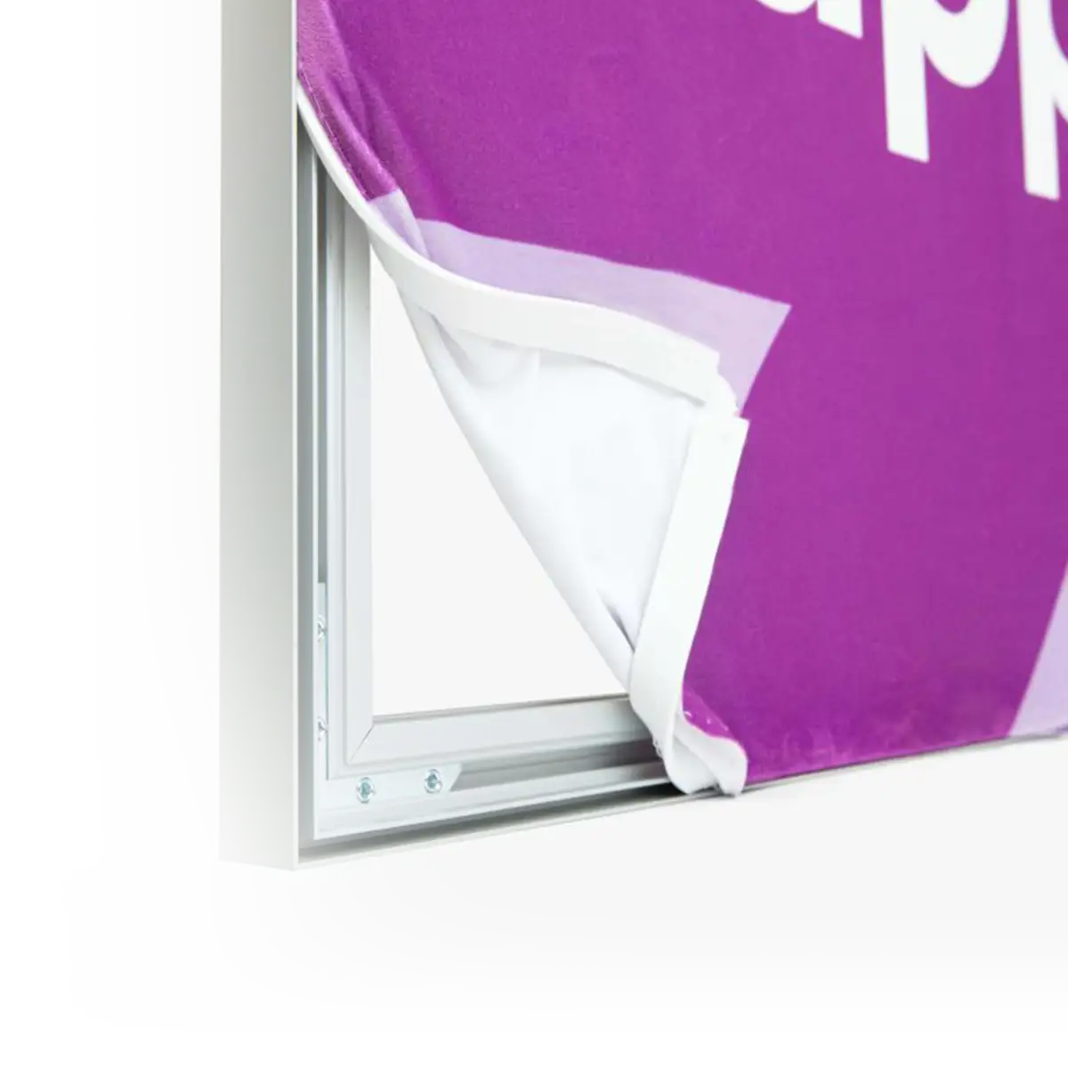 Wählen Sie selbst die gewünschte Größe und Rahmenfarbe. Wählen Sie zwischen einem silbernen, schwarzen oder weißen Profil.Einfach auszuwechselnEine anderes Design für jede Saison, Werbeaktion oder Kampagne. Ein Kedertuch hat rundherum eine flache Silikonkeder, mit der sie das Tuch ganz einfach in den Rahmen spannen können.in 3 Rahmenfarben erhältlichin 19mm oder 27mm Profilstärke erhältlichauf Wunsch auch mit Lochbohrungen alle 30cm