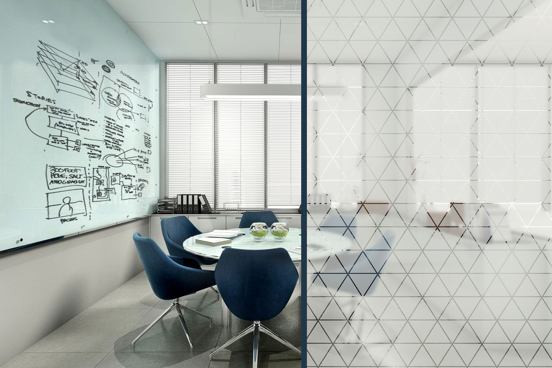 Konturgeschnittene Sandstrahlfolie mit seidenmatter, transparenter Oberfläche für die Verklebung auf Glas – vermittelt den Eindruck einer sandgestrahlten Oberfläche. Wird auch als Glasdekorfolie oder Satinatorfolie bezeichnet.