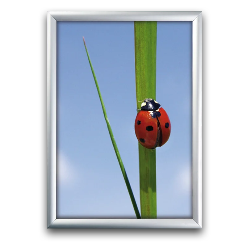 Unsere Alu Klapprahmen mit 25 mm Profil bieten eine elegante und funktionale Lösung zur Präsentation von Postern, Plakaten oder Informationen. Der silbereloxierte Alurahmen mit Ecken auf Gehrung überzeugt durch modernes Design und Stabilität. Die weiße PS-Rückwand sorgt für festen Halt, während die entspiegelte APET-Frontscheibe den Inhalt optimal schützt und gut sichtbar macht.