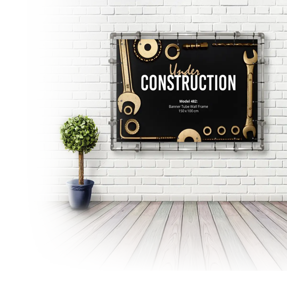 Banner-Tube bietet vielseitige Lösungen für Ihre Werbung: als Wandmontage, freistehender Rahmen, V-Rahmen oder High Stand. Das System überzeugt durch Stabilität, einfache Montage und hochwertige Materialien