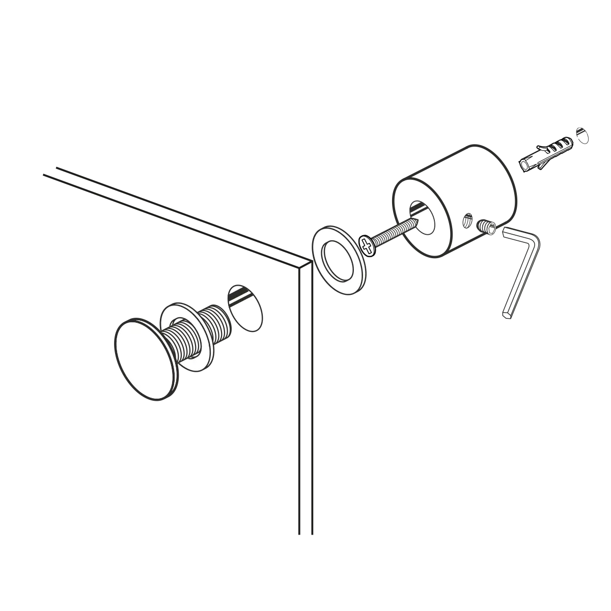 Hochwertiger Edelstahl, Stecksystem mit Arretierung. Halter an der Wand befestigen, Paneel auflegen, Kopf durch das Paneel in den Halter stecken und mit seitlicher Madenschraube im Halter gegen Manipulation sichern.