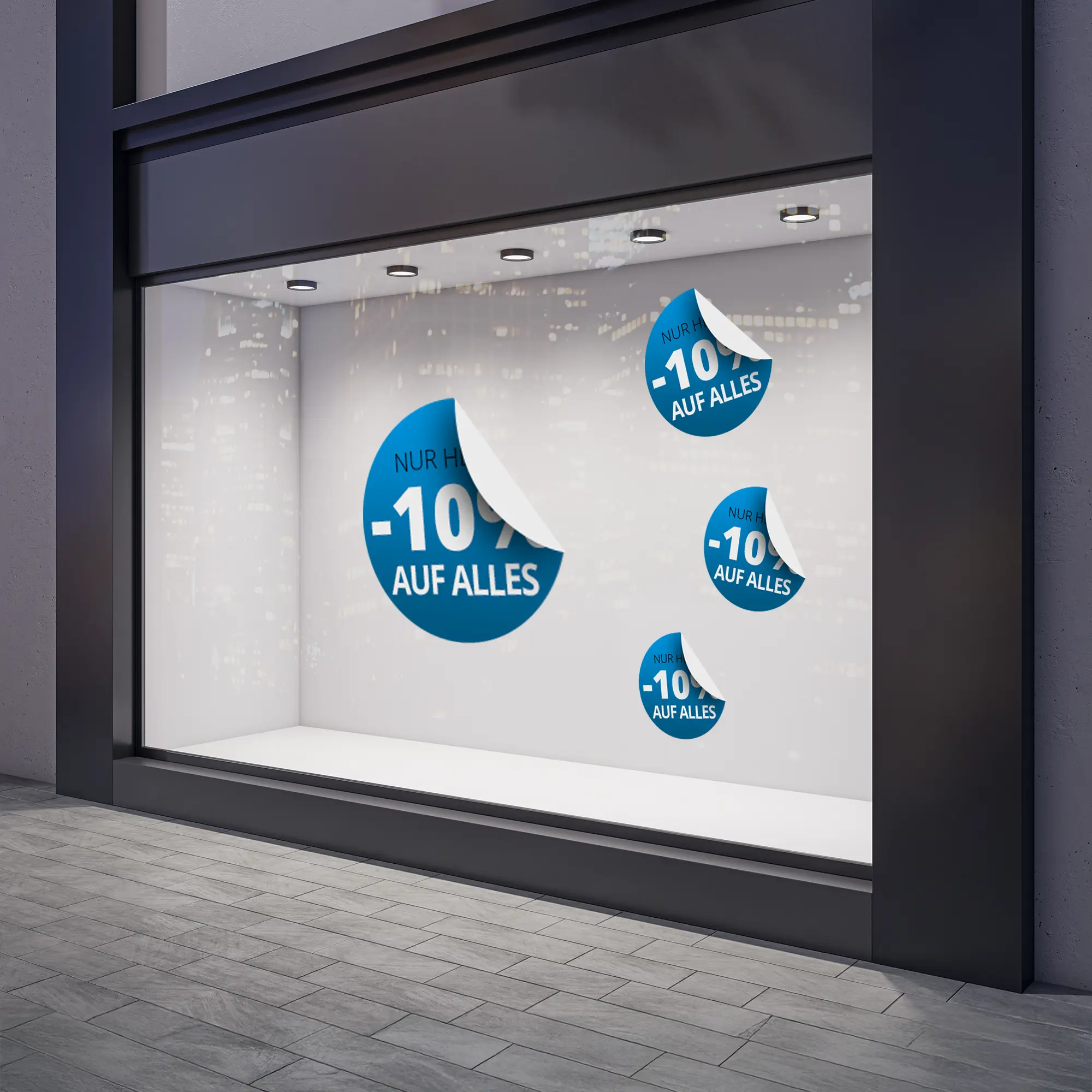 Die wiederverwendbaren Aufkleber sind wohl die einfachste Art Ihre Werbung zu verkleben. Die Aufkleber können auf allen glatten, ebenen Oberflächen verklebt werden und sind leicht wieder rückstandsfrei abzunehmen. Eine Tüpfelkleberbeschichtung sorgt für leichtes, blasen- und faltenfreies Anbringen. Damit eignet es sich besonders für den Gebrauch in Verkaufsräumen oder an Schaufenstern.